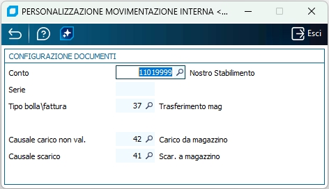 Moduli richiesti: Logistica su Palmare Con questo programma è possibile configurare il documento di movimentazione interna generato dal programma Gestione stoccaggio e movimentazione interna. I valori impostati configurano automaticamente le opzioni che altrimenti andrebbero configurate a mano dal registro di Business.