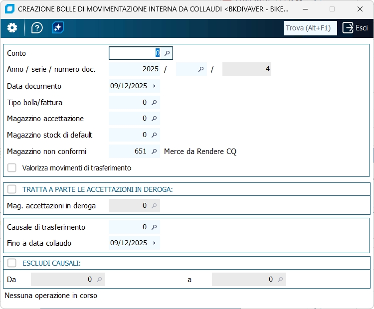 Creazione Bolle di Movimentazione Interna da Collaudi