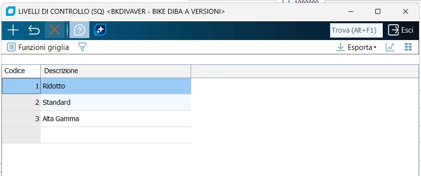 Codice Codice identificativo del livello di controllo. Descrizione Descrizione da assegnare al livello di controllo. |