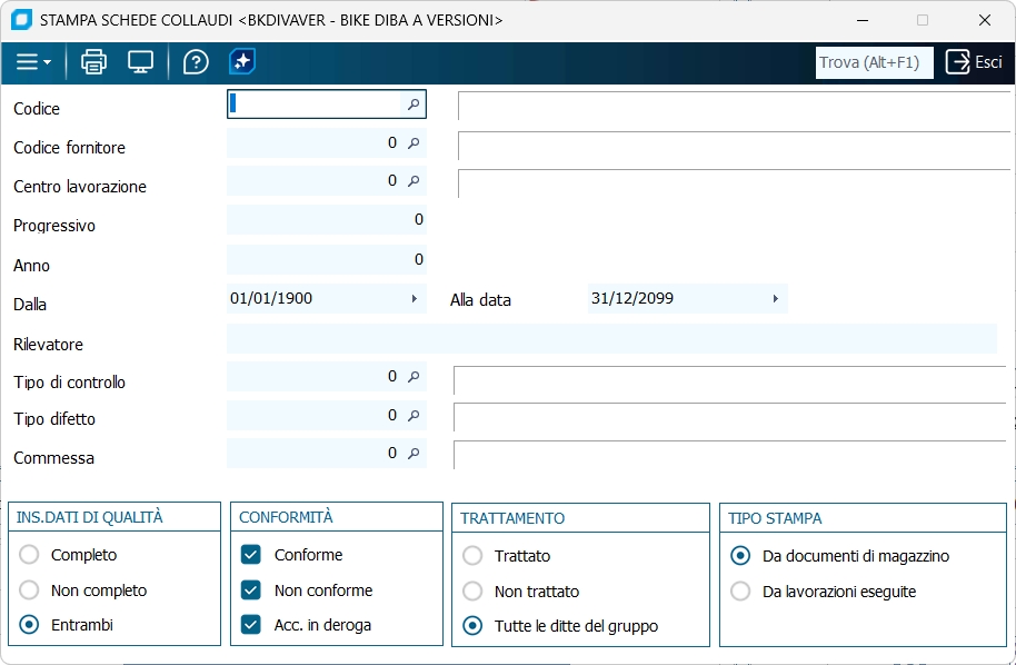 Questo programma permette di eseguire stampe di controllo sui collaudi.