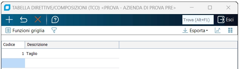 Codice / Descrizione Inserire un numero, compreso tra 1 e 9999, che rappresenta il codice della direttiva da inserire, modificare o annullare, oltre alla relativa descrizione.