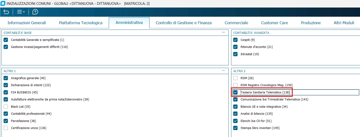 BSTSGSTS/OPZIONI/Pincode_ditta con il pincode fornito quando ci si è registrati (Sostituire il valore "ditta" con il nome ditta e nei valori inserire il Pincode per l'invio) BSTSGSTS/OPZIONI/User_ditta con il codice utente fornito quando ci si è registrati (Sostituire il valore "ditta" con il nome ditta e nei valori inserire lo user name per l'invio) BSTSGSTS/OPZIONI/Pwd_ditta con la password fornita quando ci si è registrati (Sostituire il valore "ditta" con il nome ditta e nei valori inserire la password per l'invio) Ai fini dell'invio vanno inseriti obbligatoriamente anche i i valori di codice Regione, codice ASL e codice SSA nelle apposite opzioni di registro distinte per ditta: BSTSGSTS/OPZIONI/SSA_ditta con il proprio cod. SSA (Sostituire il valore "ditta" con il nome ditta e nei valori inserire il codice SSA per l'invio) BSTSGSTS/OPZIONI/ASL_ditta con il proprio cod. ASL (Sostituire il valore "ditta" con il nome ditta e nei valori inserire il codice ASL per l'invio) BSTSGSTS/OPZIONI/REGIONE_ditta con il proprio cod.regione (Sostituire il valore "ditta" con il nome ditta e nei valori inserire il codice REGIONE per l'invio) NOVITA' 2020/2021 Sono stati implementati i nuovi campi per gestire le modifiche in vigore dal 01/01/2021: