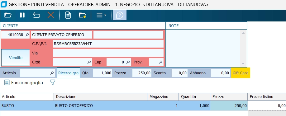 Invece da Gestione Punti vendita va indicato nell'apposito campo Cod.fis.\P.Iva