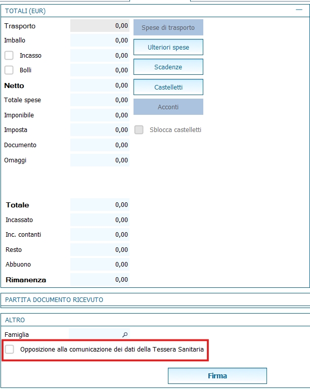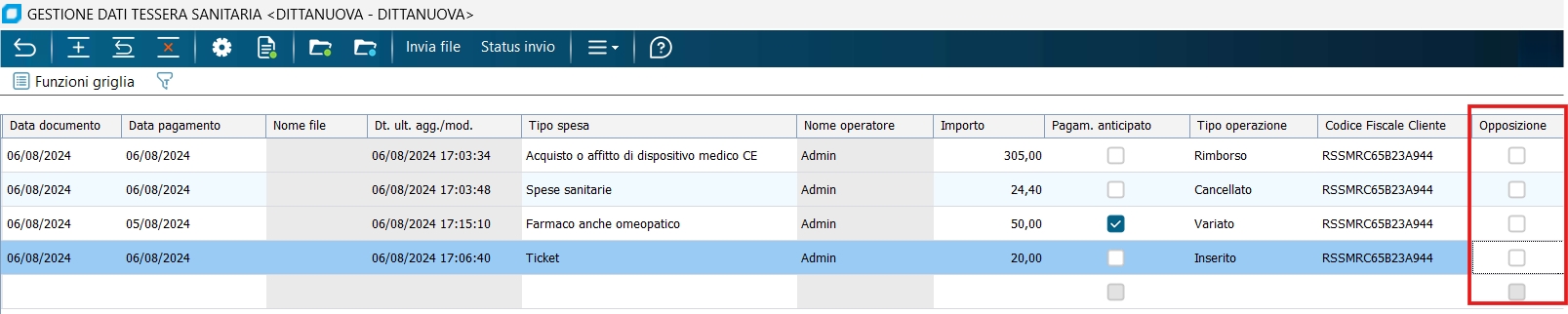 A seguito delle nuove disposizioni, vengono estratti anche i documenti con il flag di opposizione in quanto anche tali dati devono essere trasmessi al Sistema Tessera Sanitaria, senza però l'indicazione del codice fiscale dell'assistito.