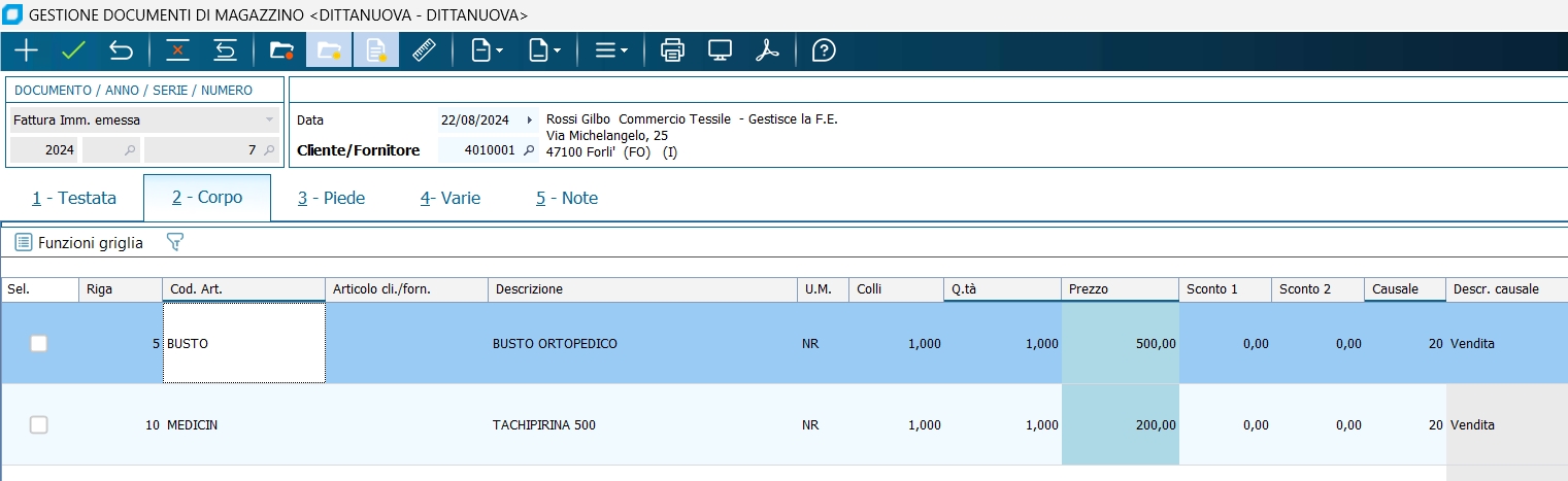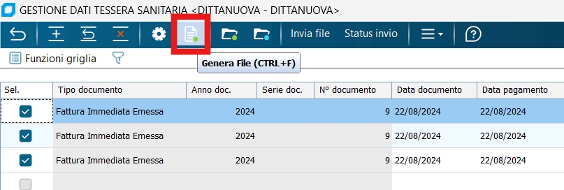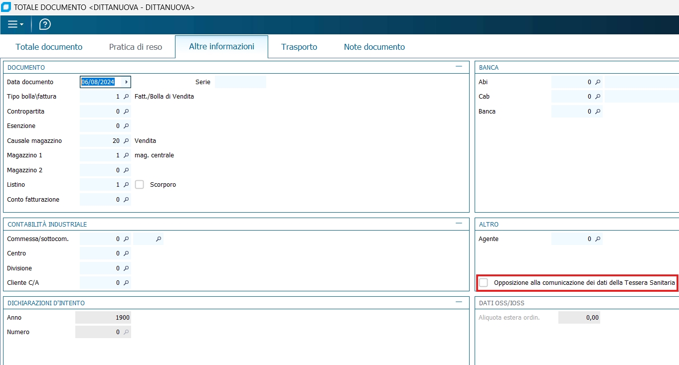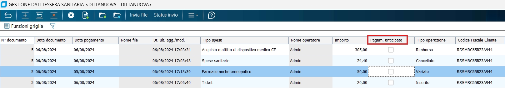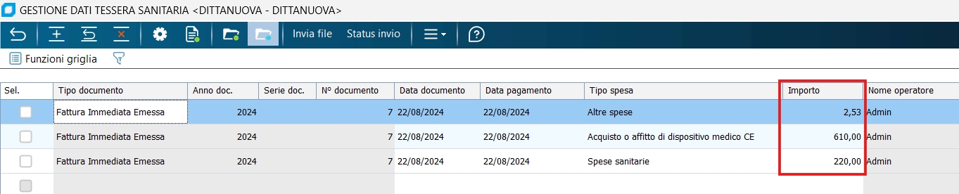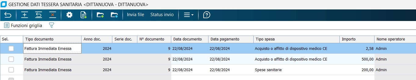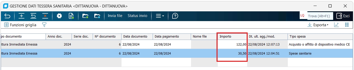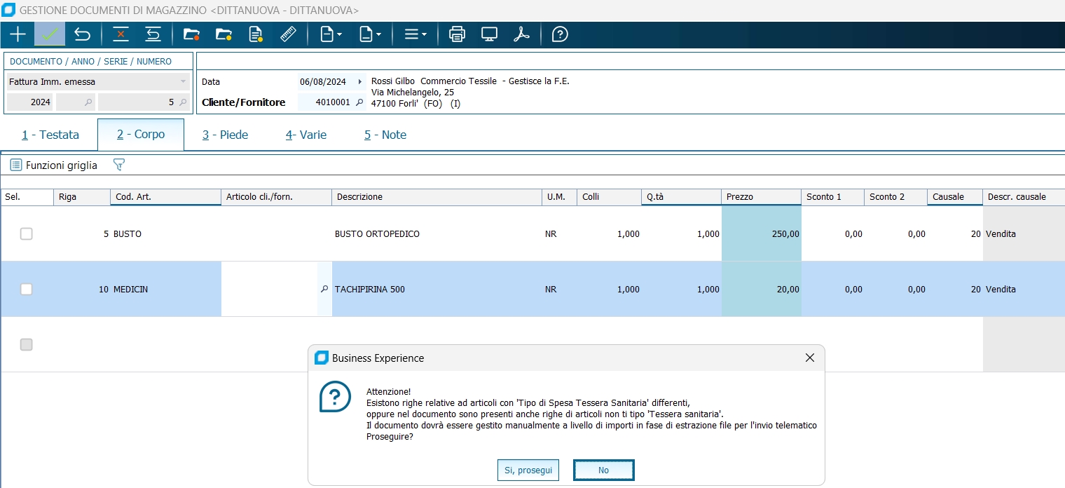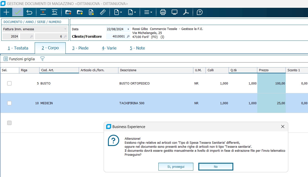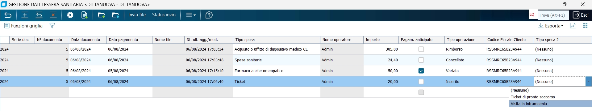 Il Tipo spesa tessera sanitaria viene estratto dalla prima riga del documento di magazzino. Per cui su uno stesso documento di vendita: