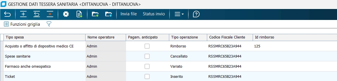 Se il Tipo Operazione è Rimborso allora deve essere indicato nella colonna ID rimborso il Codice identificativo del documento fiscale di spesa per la quale è stato successivamente emesso un rimborso all'assistito.