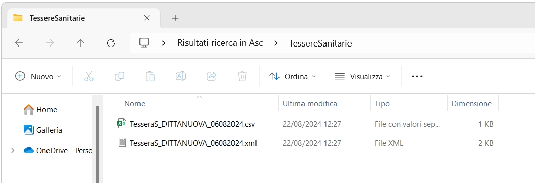 In entrambi i casi, il file viene generato nella cartella ASC\TessereSanitarie