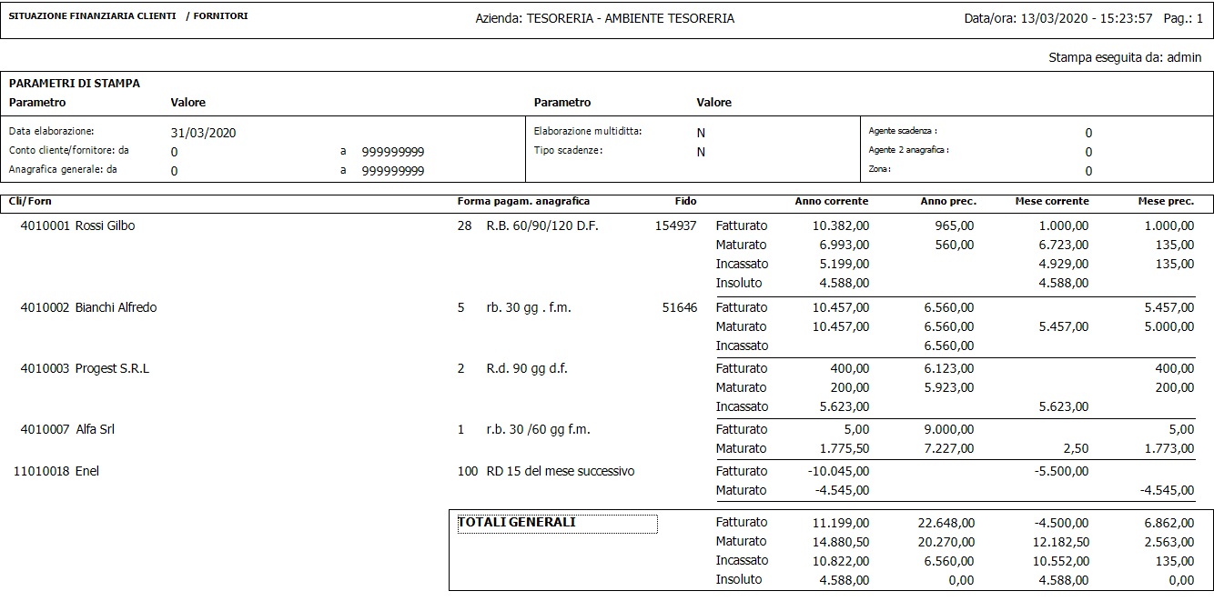 Stampa Analisi Finanziaria Avanzata Clienti - Fornitori