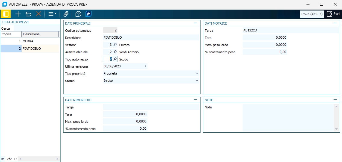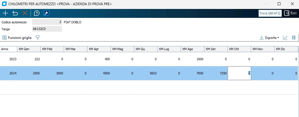 Dal menù strumenti è posibile accedere alla voce 'Chilometri per automezzo' dove è possibile gestire le letture chilometriche per ogni automezzo.