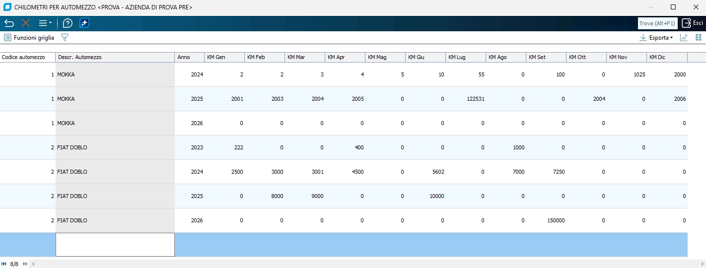 Sempre nel menù strumenti 'Chilometri per automezzi (tutti) dove è possibile inserire in maniera massiva le letture