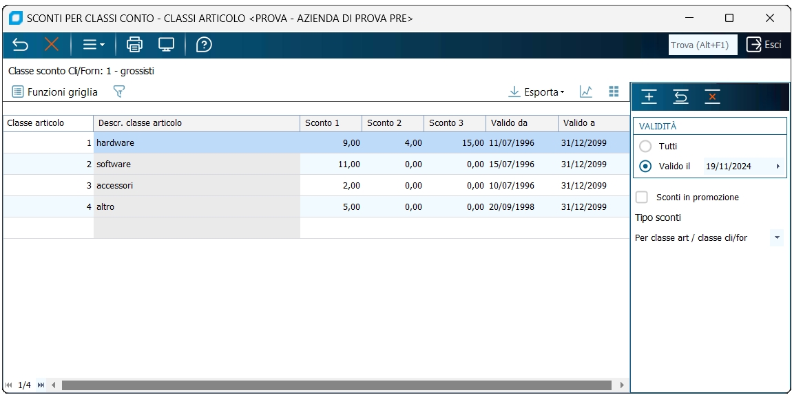 Sconti Per Classi Conto - Classi Articolo | |||
