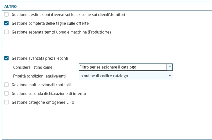 Moduli richiesti: Commerciale Base Per utilizzare le impostazioni settate in questo programma occorre attivare la Gestione Avanzata Prezzi-Sconti (abbreviato GAPS), attivabile da Anagrafica Ditta -> Dati Aggiuntivi Ditta, nel tile "Altro", spuntando il check-box "Gestione avanzata prezzi-sconti".