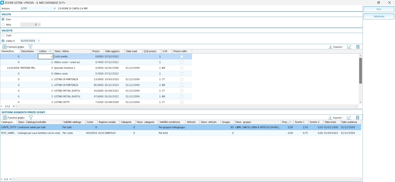 Gestione Avanzata Prezzi - Sconti | |||