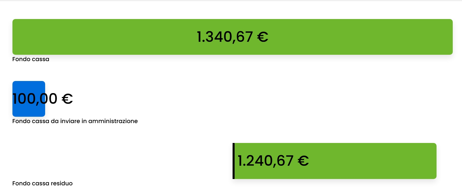 L'obiettivo di questa pagine è quella di vedere il fondo cassa residuo. Il valore di Fondo cassa iniziale è dato dal fondo cassa erogato dall'azienda detratte le spese che hanno fatto uso di questo fondo cassa e inviate all'amministrazione. Il valore Fondo Cassa da Inviare in Amministrazione, invece evidenzia le spese sostenuto con il fondo cassa ancora da inviare all'amministrazione Il valore del Fondo Cassa Residuo dovrebbe corrispondere ai valore del fondo casso effettivamente in portafoglio dal tecnico. (e' la risultanza del fondo cassa - fondo cassa da inviare all'amministrazione).