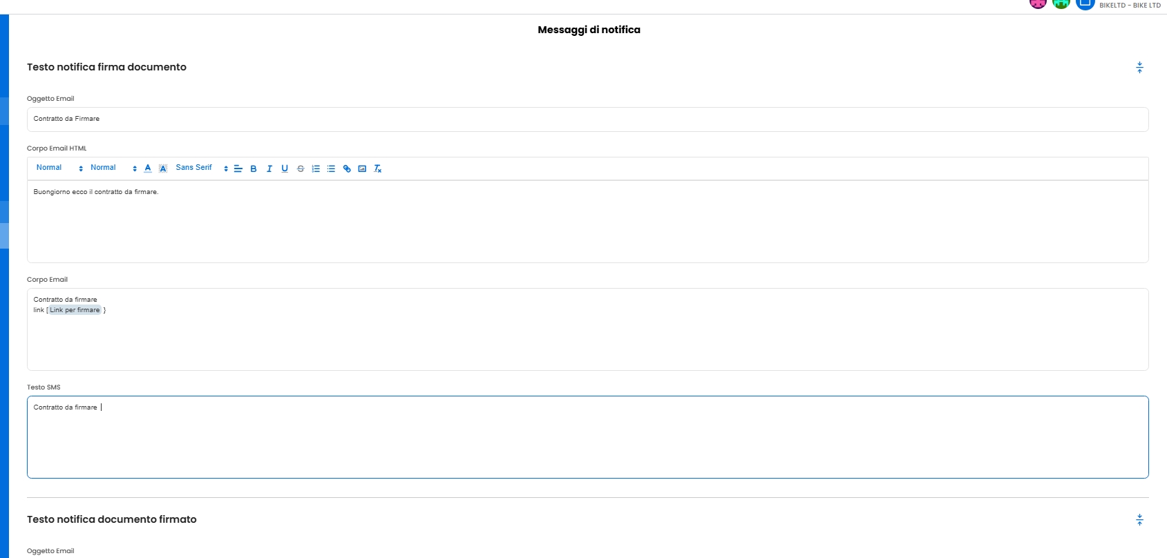 In questa maschera, oltra l nome del modello e ad una descrzione, si posson indicare in quale modalitą inviare il link ai firmatari (Email e/o SMS), e anche chi, tra coloro che emetto il documento da firmare, riceverą una email di notifica cambio stato del processo di firma (in aggiunta a destinatari che devono firmare il contratto) premendo Avanti si accede alle varie richiste necessarie per completare il processo, ad esempio i dati obbligatori da indicare nel processo come in questo caso la data e il numero del documento (nel caso non venissero gia settati dal gestionale). In questo esempio sono processi di firma svincolati dal gestionale (ad esempio PDF generati da altre applicazioni).
