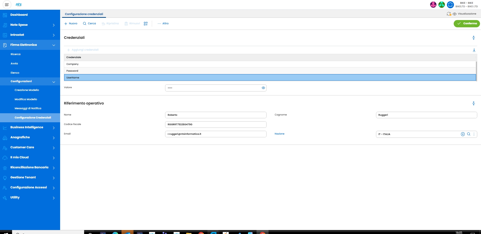 Configurazione Credenziali