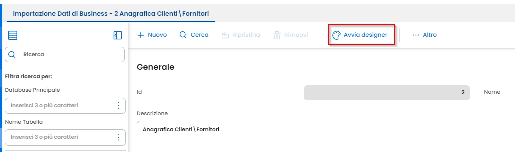 Per effettuare selezioni e/o filtri occorre avviare il Designer a seconda della tabella che si vuole trattare: