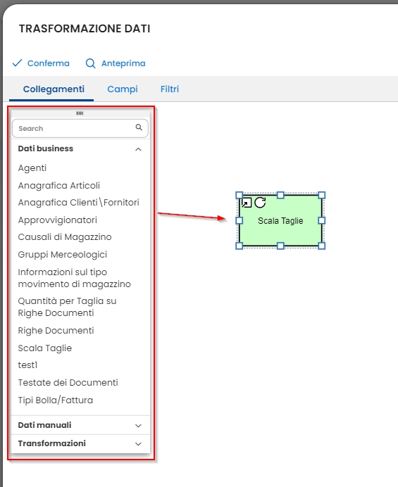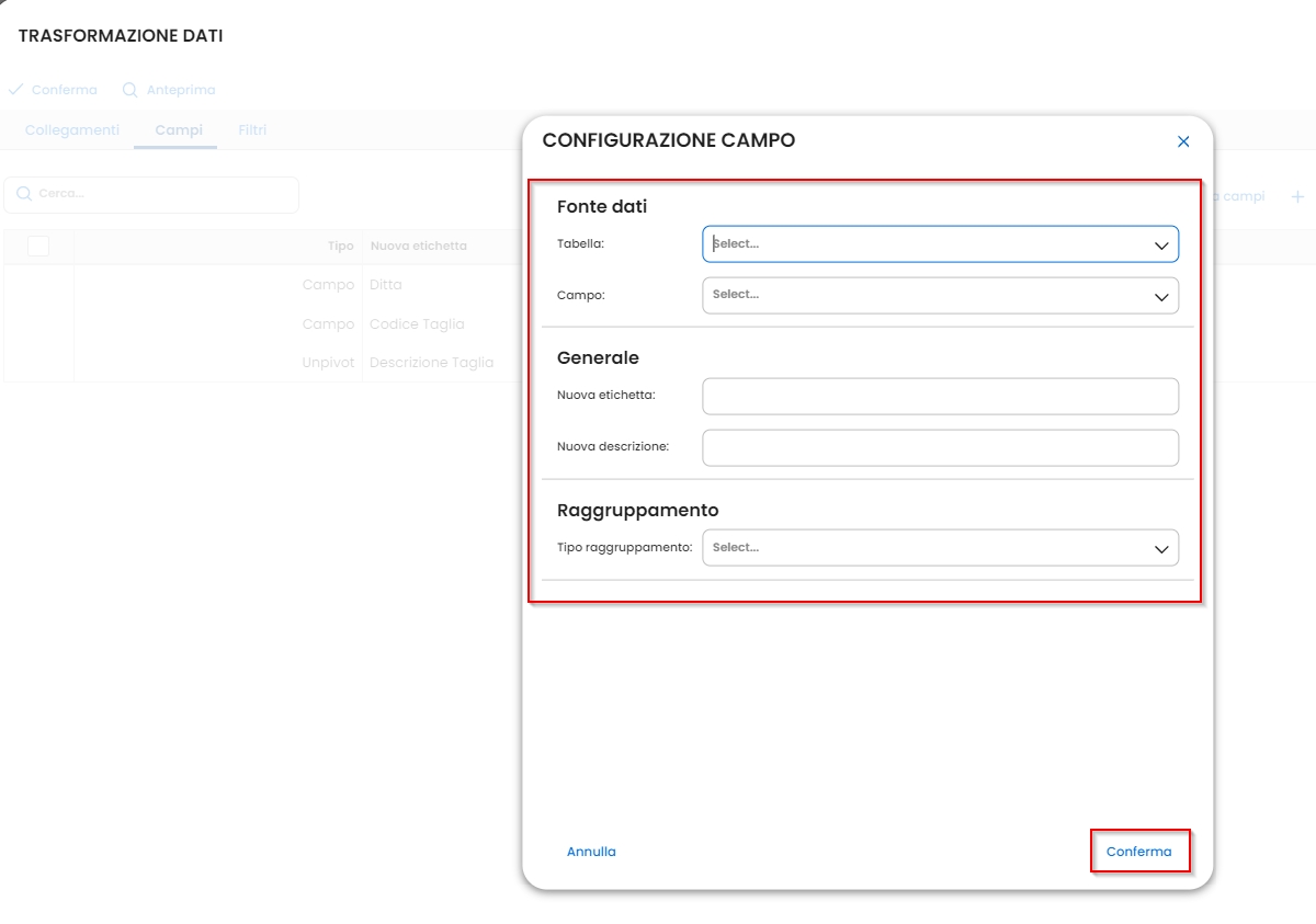 Una volta effettuate le trasformazioni necessarie, premere il pulsante Conferma.