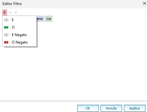 Dalla versione Cube è stata inserita la possibilità di filtrare in modo più approfondito le colonne.