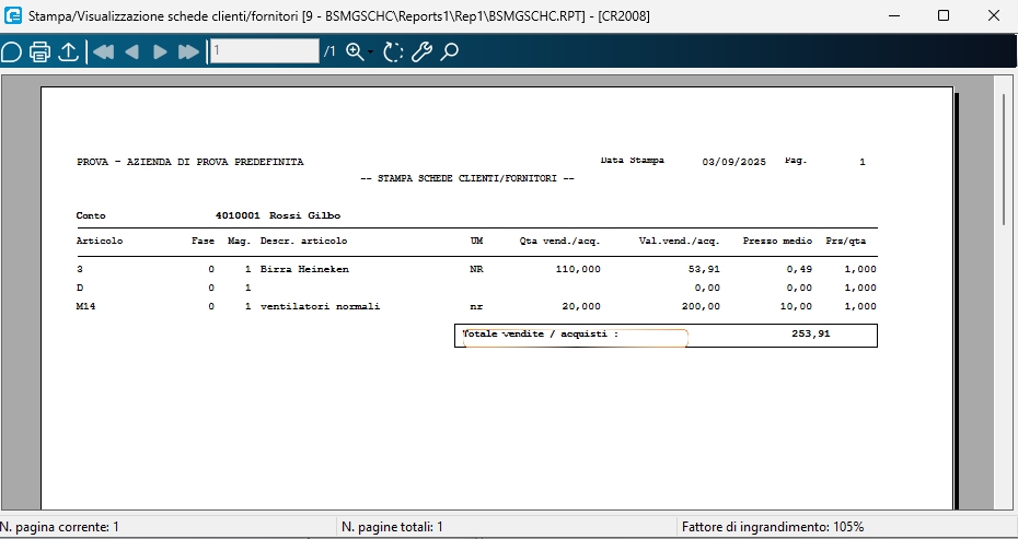 Dalla toolbar, nei programmi che lo prevedono, cliccando sul tasto Stampa Video è possibile entrare in una anteprima di stampa del report gestito da Crystal Report.