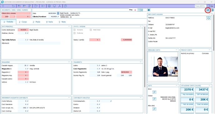 Alcuni dati sono interattivi/cliccabili direttamente dalla wing, come ad esempio: Sintesi e statistiche, situazione conto, le note, ecc.