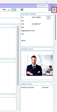 Le Business Wings sono componenti grafici posizionati sulle fasce laterali dei principali programmi di gestione, che permettono di visualizzare le informazioni relative al contesto corrente. Ad esempio, mentre si effettua una ricerca su un cliente, sono qui visualizzate le informazioni anagrafiche del cliente, i dati contabili sintetici (fatturato, insoluti ecc.). L'icona per l'apertura/chiusura delle wing si trova a destra della schermata. All'avvio la wing è di due colonne, ma è possibile decidere di renderla ad una colonna, cliccando il pulsante in alto a sinistra «Stringi ala». Rimangono valide le opzioni presenti che riguardano le wing, ma è stata creata l'opzione globale che indica come si aprono le wing all'avvio: BUSINESS/OPZIONI/WingChiusaAllAvvio (0/-1, default 0)