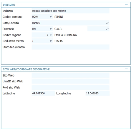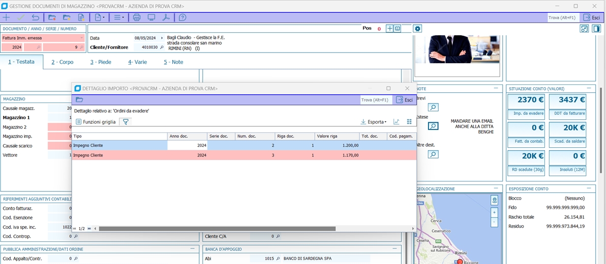 Per quanto riguarda la Geolocalizzazione, la mappa (zoom recentato e tipo di mappa recentata) controlla come prima cosa se sono presenti le informazioni relative alla latitudine e alla lingitudine se non sono presenti, verificherà l'indirizzo del conto presente in Anagrafica del tab 1 Generale. Si possono parametrizzare i dati di visualizzazione, ad esempio Bing, Google Map,ecc.