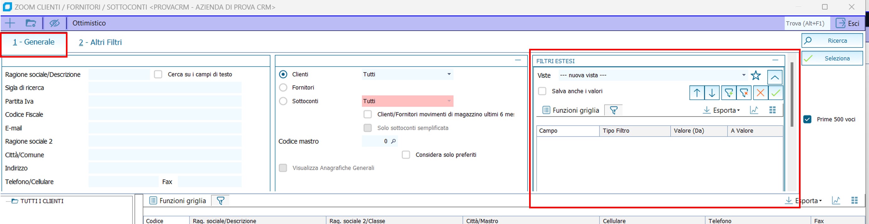 I nuovi Filtri estesi non sono più un tab della pagina, ma sono integrati nel tab Generale, così da essere più visibili e meglio fruibili dall'operatore.