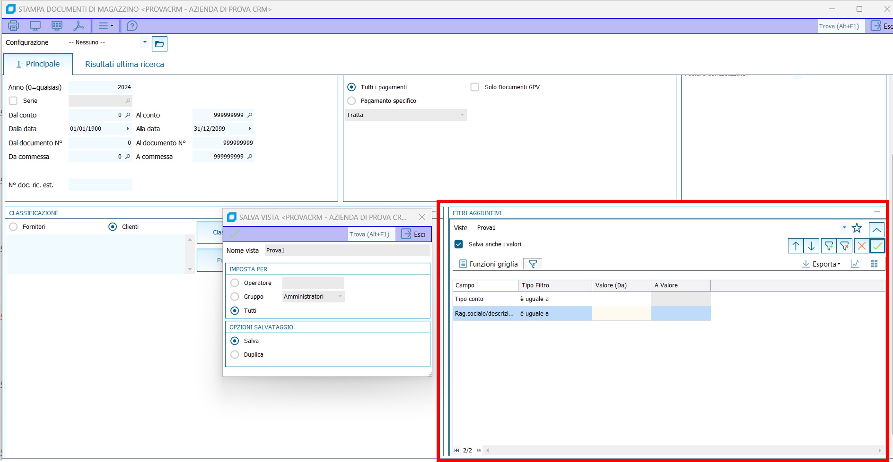 Tramite la gestione dei Nuovi Filtri Estesi, è possibile aggiungere un numero di filtri illimitato, posso salvarli con il valore, posso gestire le diverse viste e posso configurarle per operatore/ruolo e renderle visibili solo per alcuni.