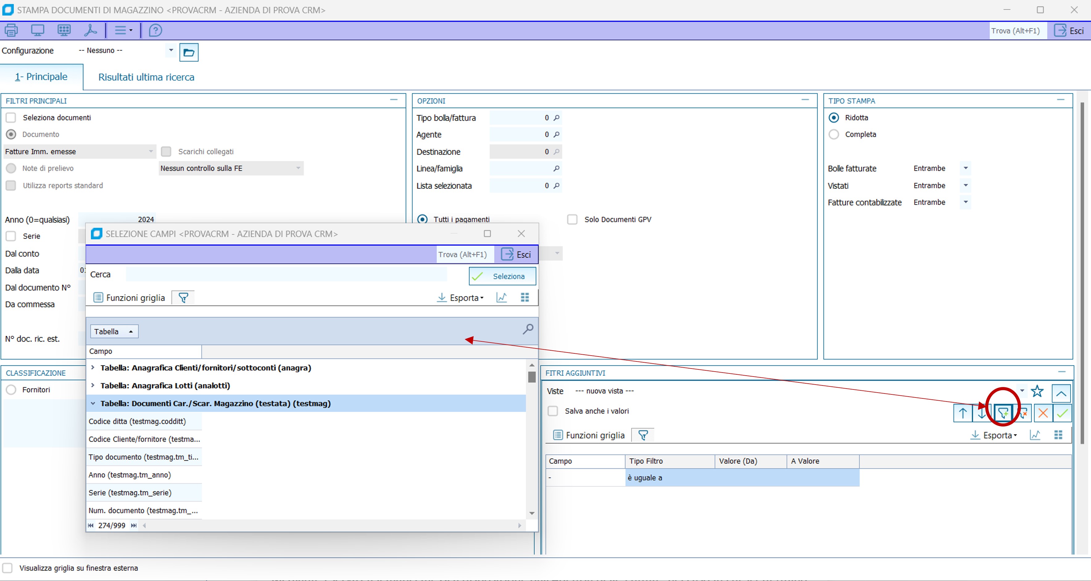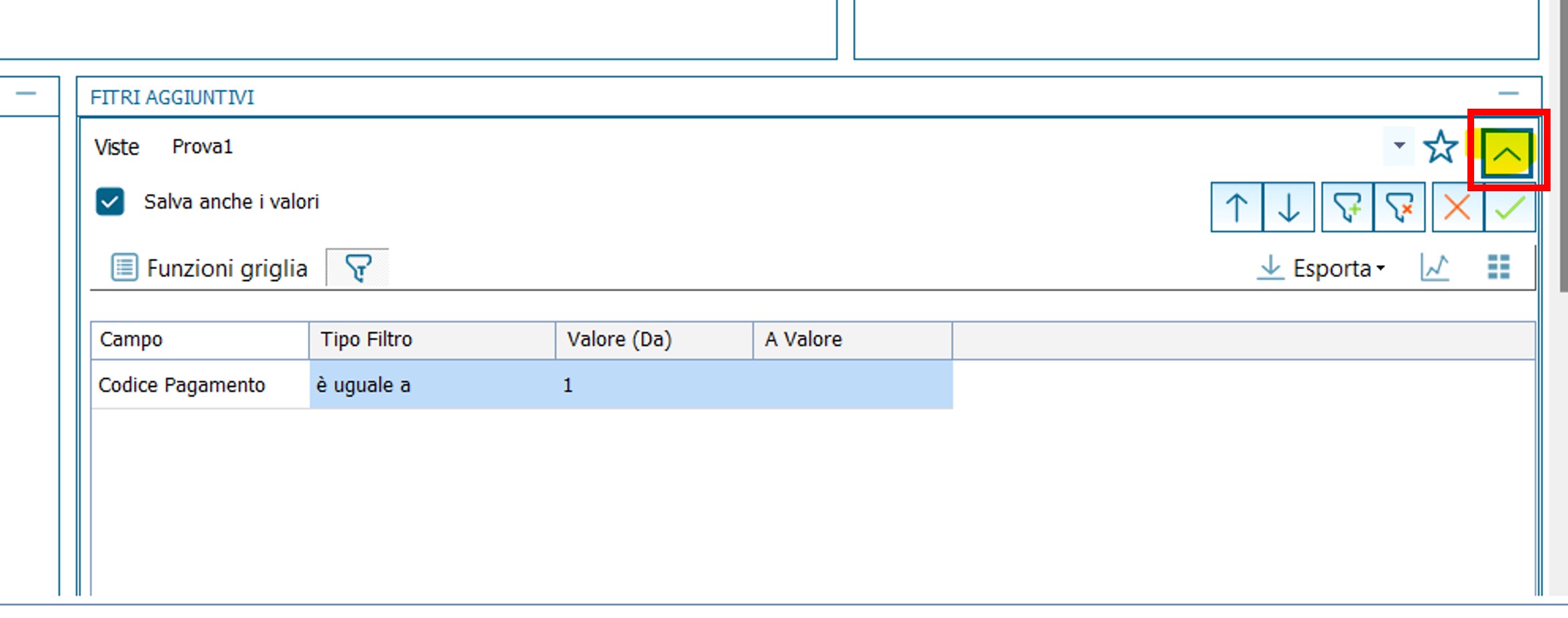 Con l'utilizzo del pulsante nascondi opzioni, posso far scomparire le varie opzioni del programma. Se utilizzo il "Configuratore userinterface" posso inibire la visualizzazione del pulsante ad un certo gruppo di operatori (ad esempio visibile solo per gli amministratori) cosicché chi non deve avere accesso alla modifica dei filtri a standard non riuscirà ad accedervi. Non è possibile creare un nuovo filtro senza utilizzare il comando presente nelle opzioni. Ovviamente è posisibile agire andando ad inibire anche i singoli pulsanti, magari un operatore non dove poter aggiungere e cancellare filtri ma poter cambiare l'ordinamento, tramite i tasti su e giù.