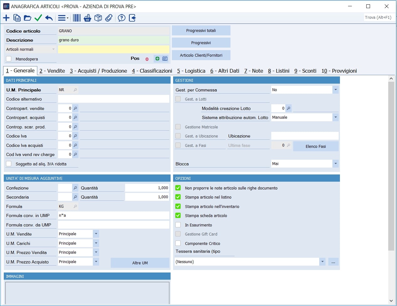 • non è presente alcuna gestione/memorizzazione autonoma di costi ultimi, medi ecc... riferiti ad unità di misura diverse dalla principale (la cosa è presente solamente nell'archivio dei listini);