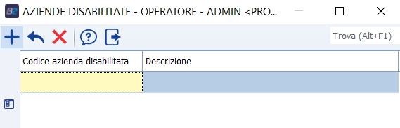 E' possibile indicare eventuali aziende disabilitate per l'operatore corrente. Ditte abilitate