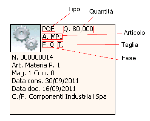 Come ultima cosa descriviamo alcune caratteristiche di un singolo nodo del grafico, il quale può essere legato ad un Impegno/Fabisogno oppure ad un Ordine/Disponibilità. Il nodo è rappresentato da un icona immagine, dove il doppio click del mouse porta all'apertura dell'ordine/impegno; da una label che contiene il tipo del nodo e la quantità, codice, fase e taglia dell'articolo; da un testo ulteriore solitamente non visibile se non cliccando sulla label con il tasto sinistro del mouse (per nasconderlo cliccare nuovamente sulla label). Il nodo quando è selezionato ha la label evidenziata.