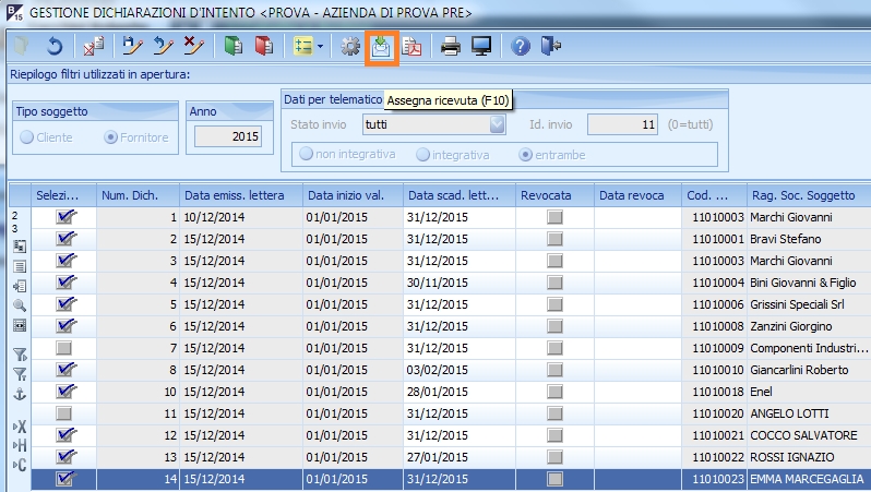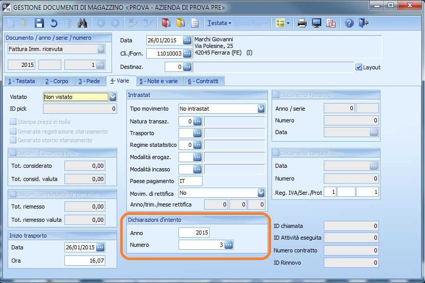 Gestione dichiarazioni d'intento | |||